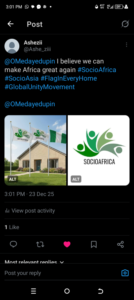 As I look to the future, I am excited to see what members of SocioAfrica 🌍 x SocioAsia 🌏 will achieve. I know that they will carry on my legacy of innovation and sustainability, and that they will make their own unique contributions to the world, i also remain committed to making Nigeria 🇳🇬 Great Again through Socio Technologies Limited – Oluwaseun Medayedupin 🌟