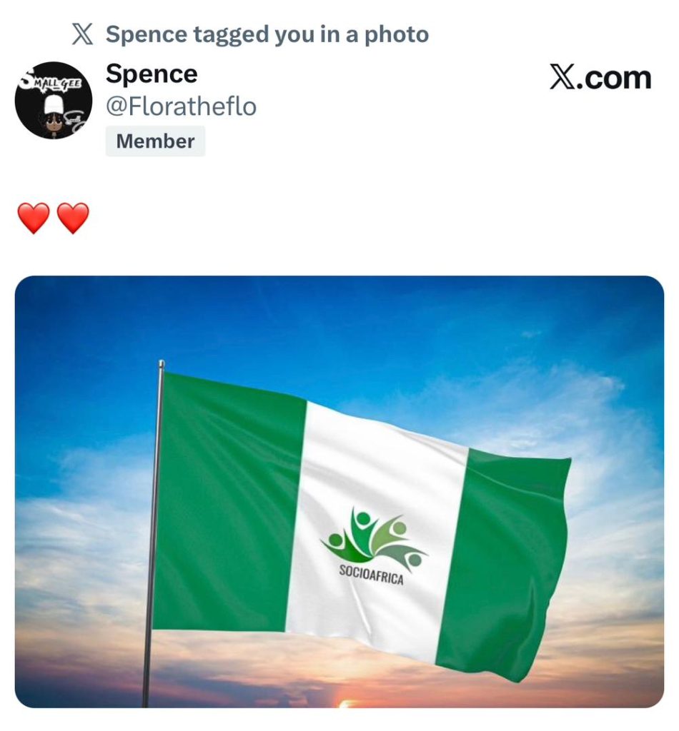 Planting the Nigerian, SocioAfrica & SocioAsia Flags in Every Home Nationwide & in Nigerians, Africans & Asians Homes Worldwide for Peace & Unity & Protection